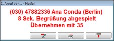 Dem Anrufer spielt sie eine Systemansage vor, die ihn darüber informiert, dass er als Notfall behandelt wird. Anschließend hört er weiter die eingestellte Abfolge.